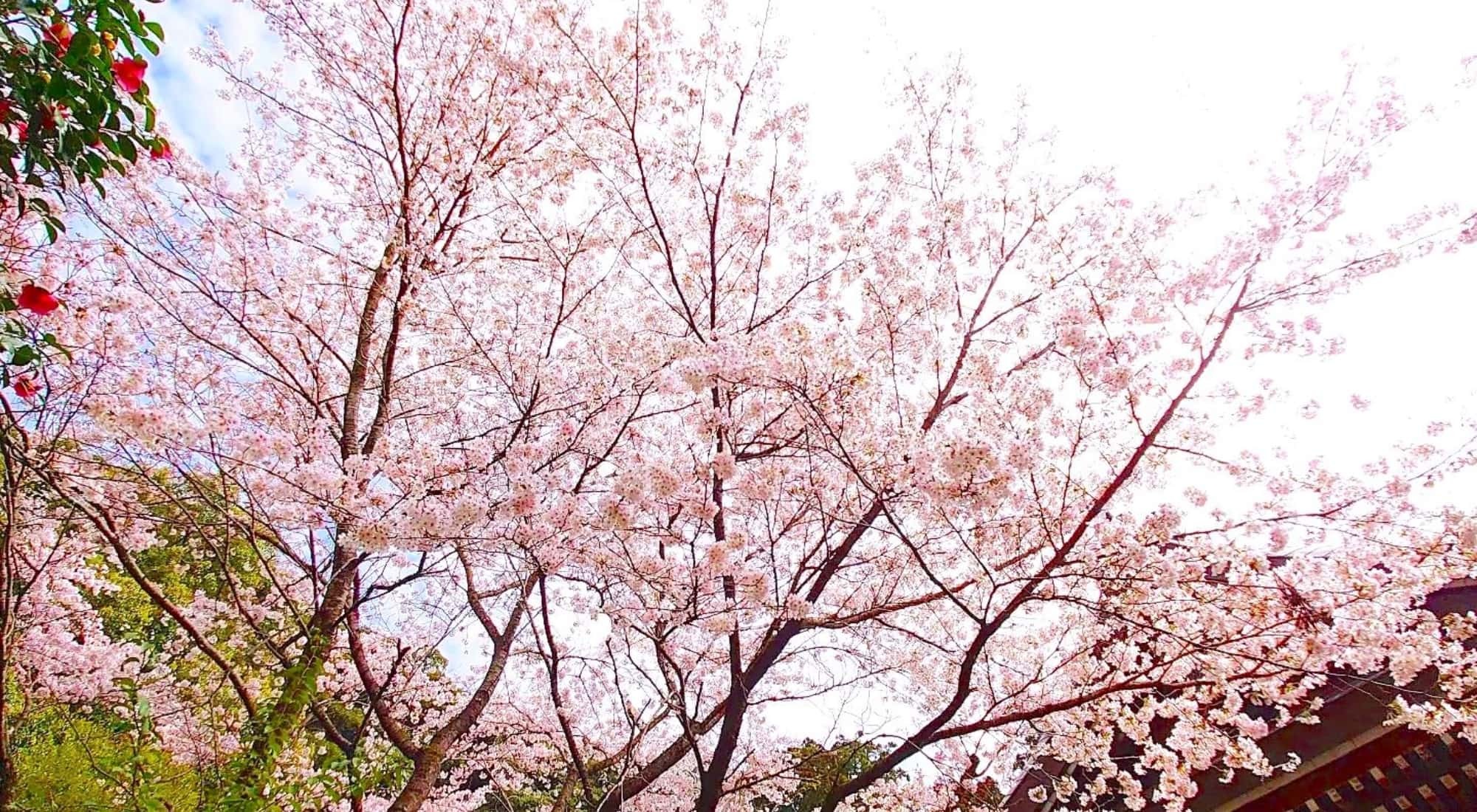 境内が桜色に染まり、風に舞う花びらが、まるで時の流れを忘れさせてくれるかのように、優雅に舞い散ります。