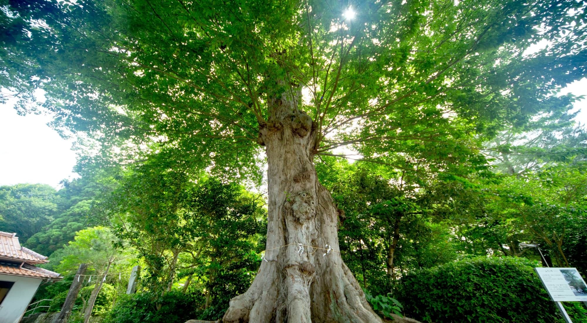 新緑に囲まれ、境内は生命力に満ち溢れています。木々の若葉が鮮やかな緑色に輝き、風にそよぐ姿はまるで大地が