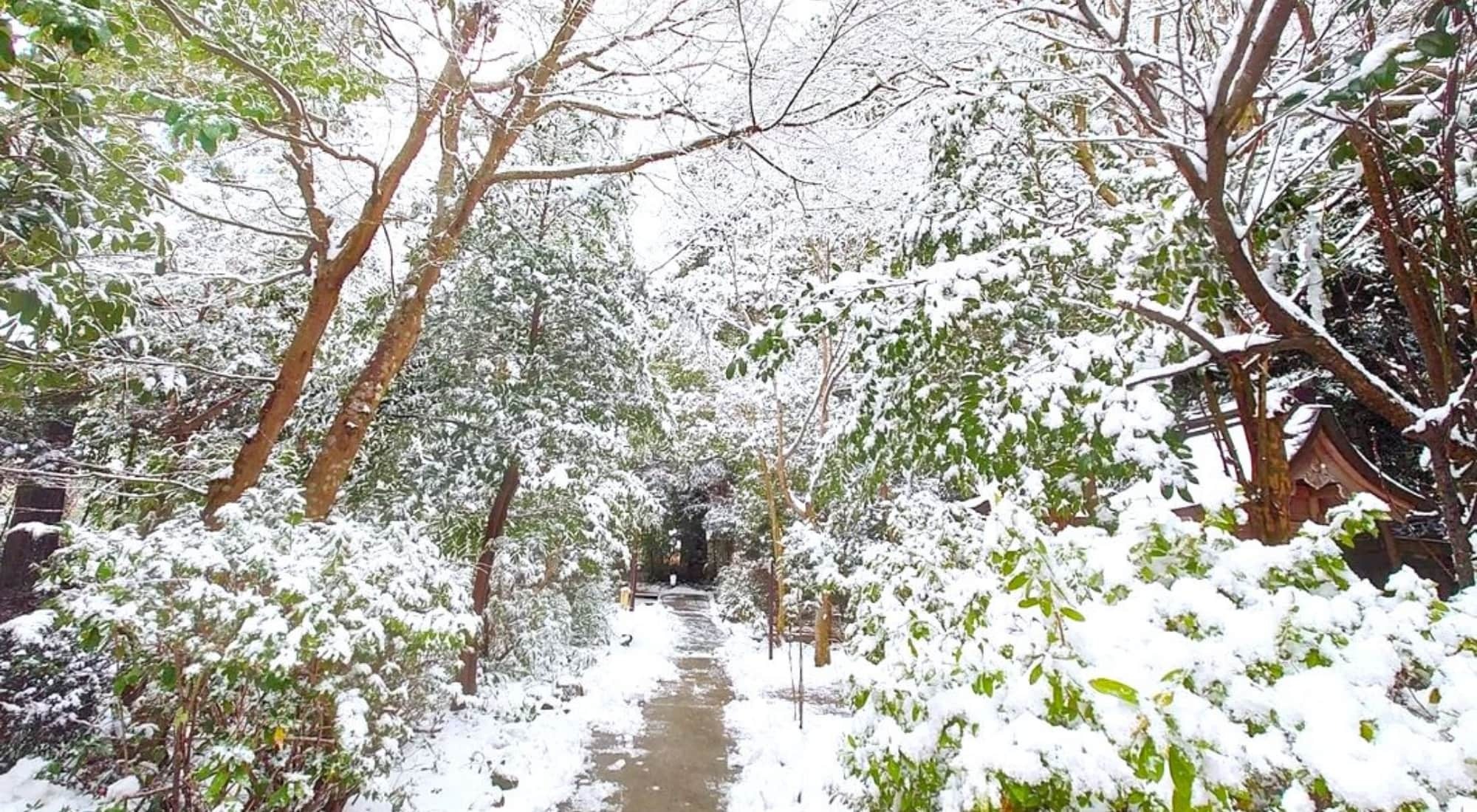 冬の境内は、静寂と美しさが調和した特別な空間です。時には雪が境内を覆い尽くし、一面の白銀の世界が広がります。枝に積もった雪が輝き、太陽の光が反射してキラキラと美しい光景を創り出します。