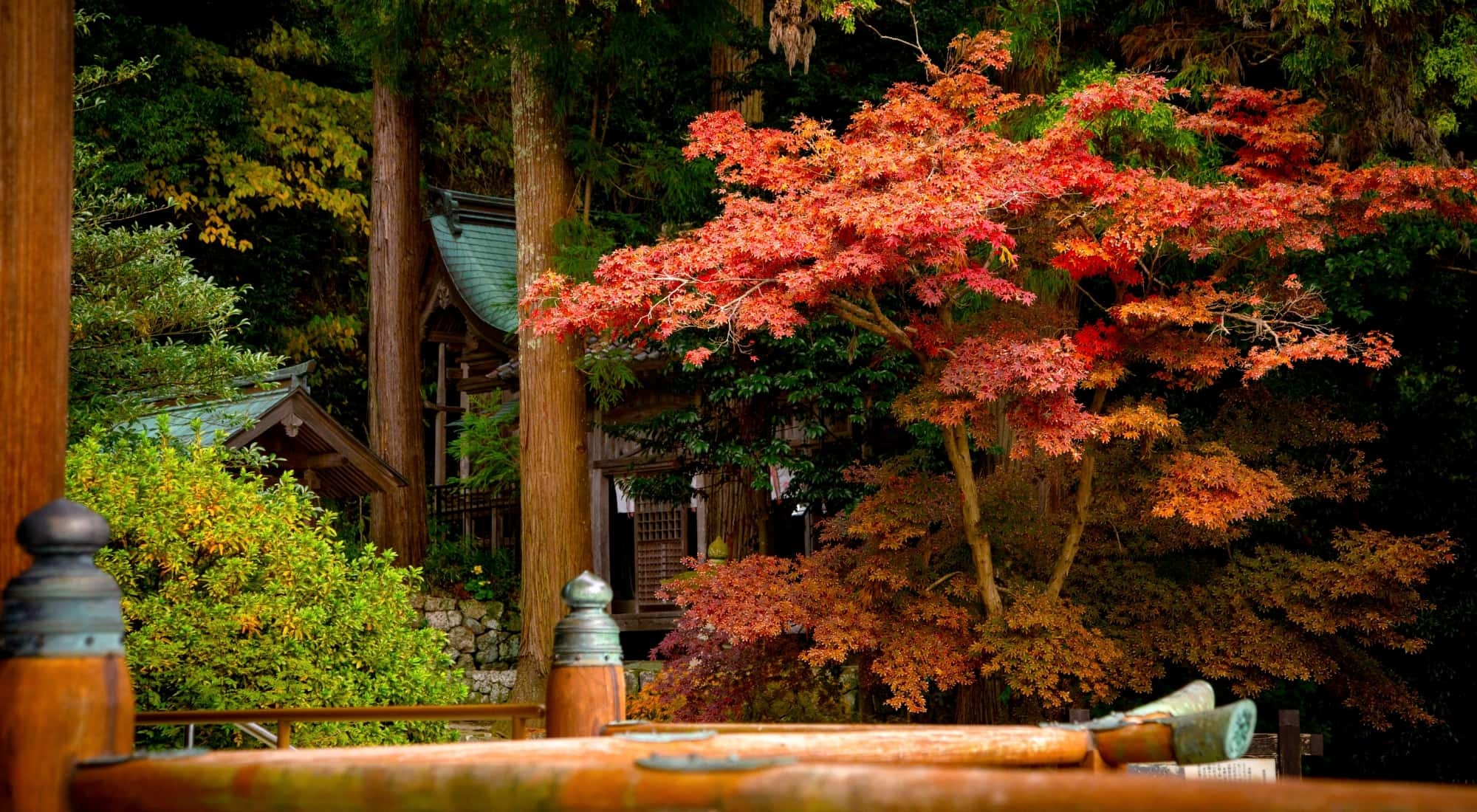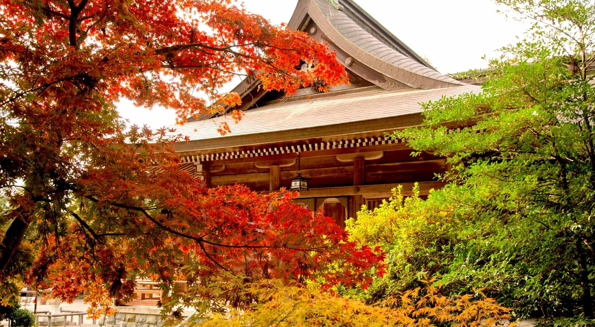 紅葉した周辺の山々や木々が、境内全体を鮮やかな赤や黄色に染め上げます。秋の澄んだ空気と共に、豊かな自然の彩りを感じながら、訪れる人々の心に美しさを刻んでいただけます。